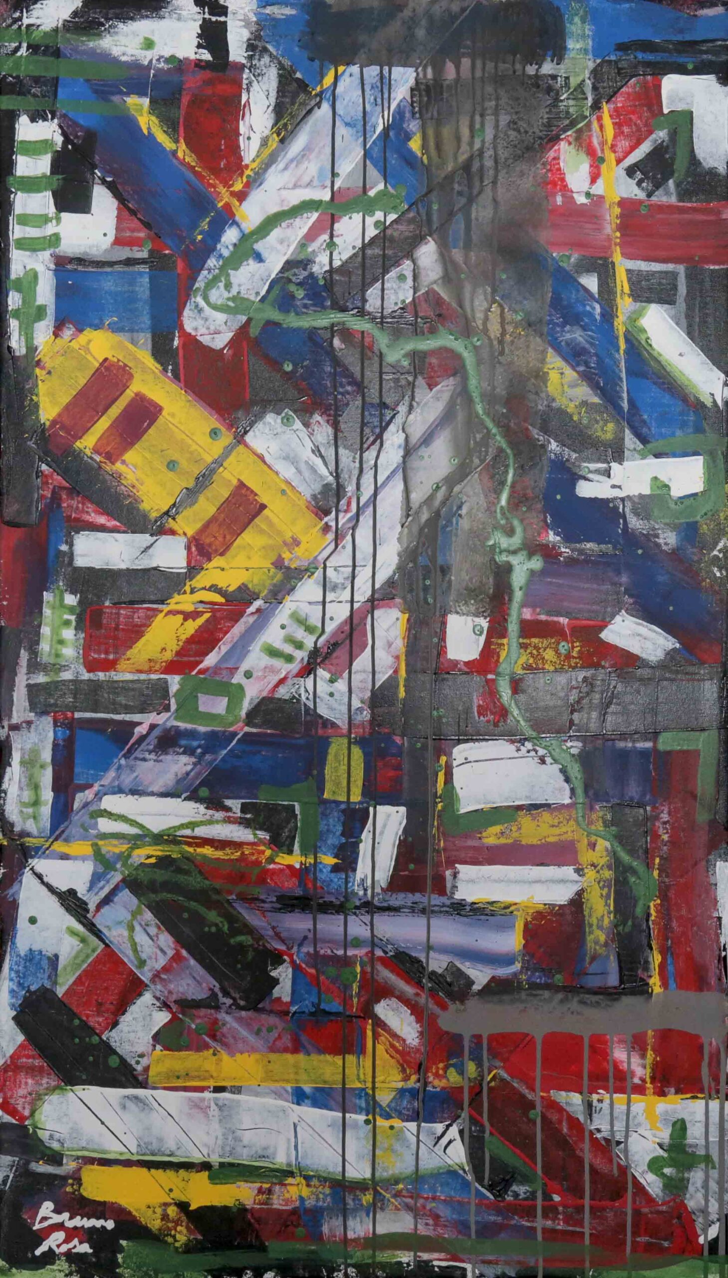 “IX” aka “Estruturas em Ruína” explora o frágil equilíbrio entre a ordem arquitetónica e a desconstrução espontânea. A obra, impregnada de uma energia construtiva e corrosiva, revela as tensões invisíveis que habitam qualquer tentativa de organização do caos interior e exterior. Uma viagem visual onde a solidez cede lugar à transformação contínua